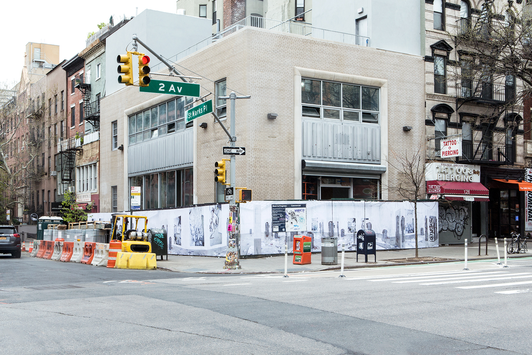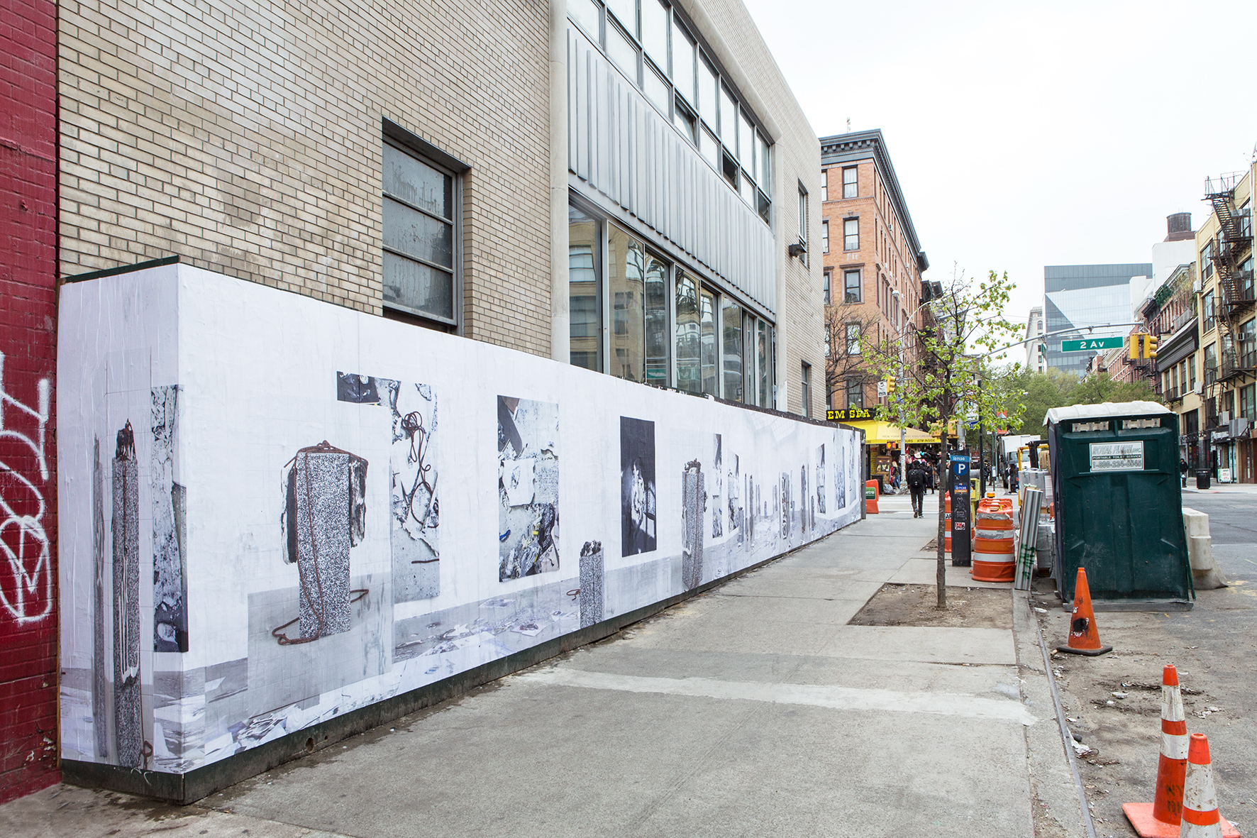 grid/2 by Peles Empire, installed on the construction shed surrounding 38 St Marks Pl.