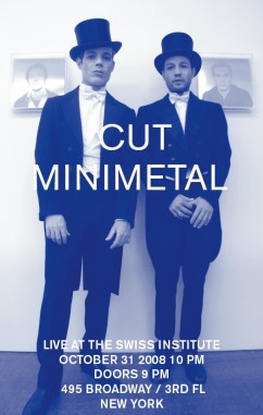 Live on Halloween, Swiss Institute invites you to the NYC performance of Minimetal. Minimetal will introduce New York to CUT !, a music set involving deafening sound and special guest from Zurich Marydale.