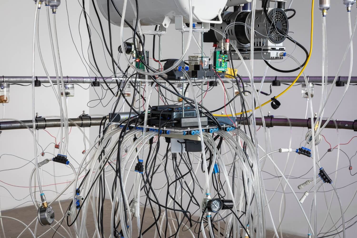Embedding viewers in feedback loops of electricity, breath, and movement, Pandega foregrounds relations shaped by cycles of life, extraction, and reciprocity. Guided by a DIY engineering ethos and a deep engagement with materials, his works convey a sense of both precariousness and vulnerability, experimentation and ingenuity.