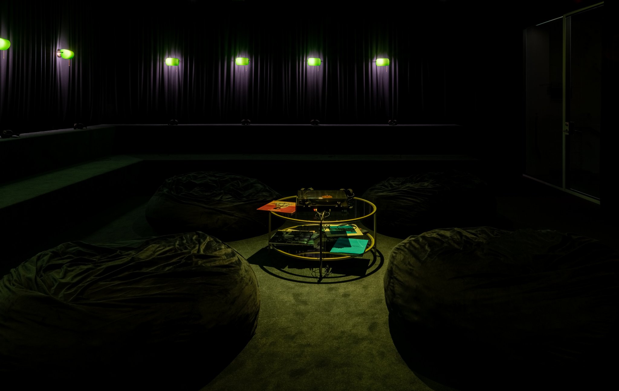 The second floor of SI is a room for listening and a venue for monthly live performances of the exhibition’s score. Conceived by Smith, composer Tariq Al-Sabir, and vocalist and artist Freddie June, the triadic composition functions as another text, a B-side to the exhibition’s forthcoming catalogue, that draws from principles of improvisation and looping to create capaciousness. Its three segments, “The Storm,” “The Belly,” and “The Reemergence,” consist of a freedom song written by Freddie June that is continuously stretched and reshaped. The score looks to the essence of wailing, shouting, screaming, inhaling and exhaling, “those things we do with the breath,” writes Smith, that make the unspeakable corporeal, that make life rather than noise. Playlists and recordings made by artists in the exhibition are embedded in risers, and a record player prepared for two listeners plays host to a collection of vinyl selected by Smith. Saturated in sound, the exhibition itself becomes an architecture in which noises bleed and stories are told.