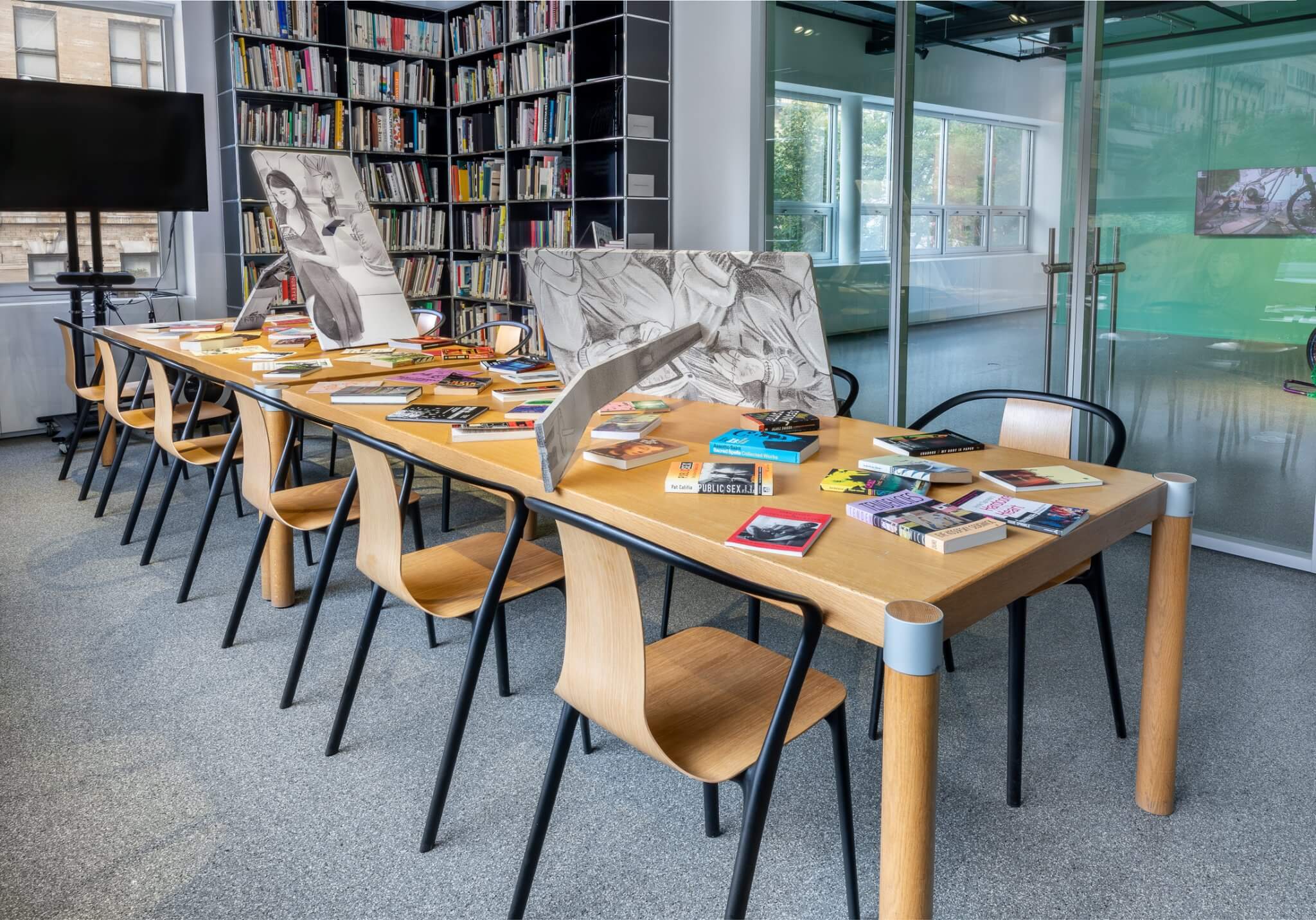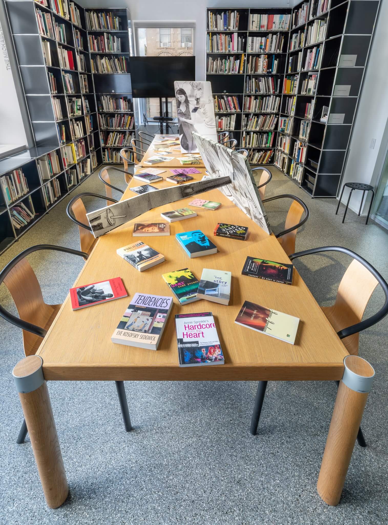The installation features a selection of over 50 radical, rare, and out-of-print titles sourced primarily from the US and Italy. These books, available for visitors to read on-site, engage with increasingly surveilled and marginalized bodies of knowledge, including feminist theory, queer and postcolonial studies, poetry, and related discourses. Responding to the recent growing wave of state censorship, particularly within the United States, the selection centers on books published by High Risk, a provocative anthology series that evolved into an independent publishing house in the 1990s. Founded by Ira Silverberg and Amy Scholder, High Risk was renowned for amplifying transgressive voices and fostering critical conversations around sexuality, identity, and dissent.