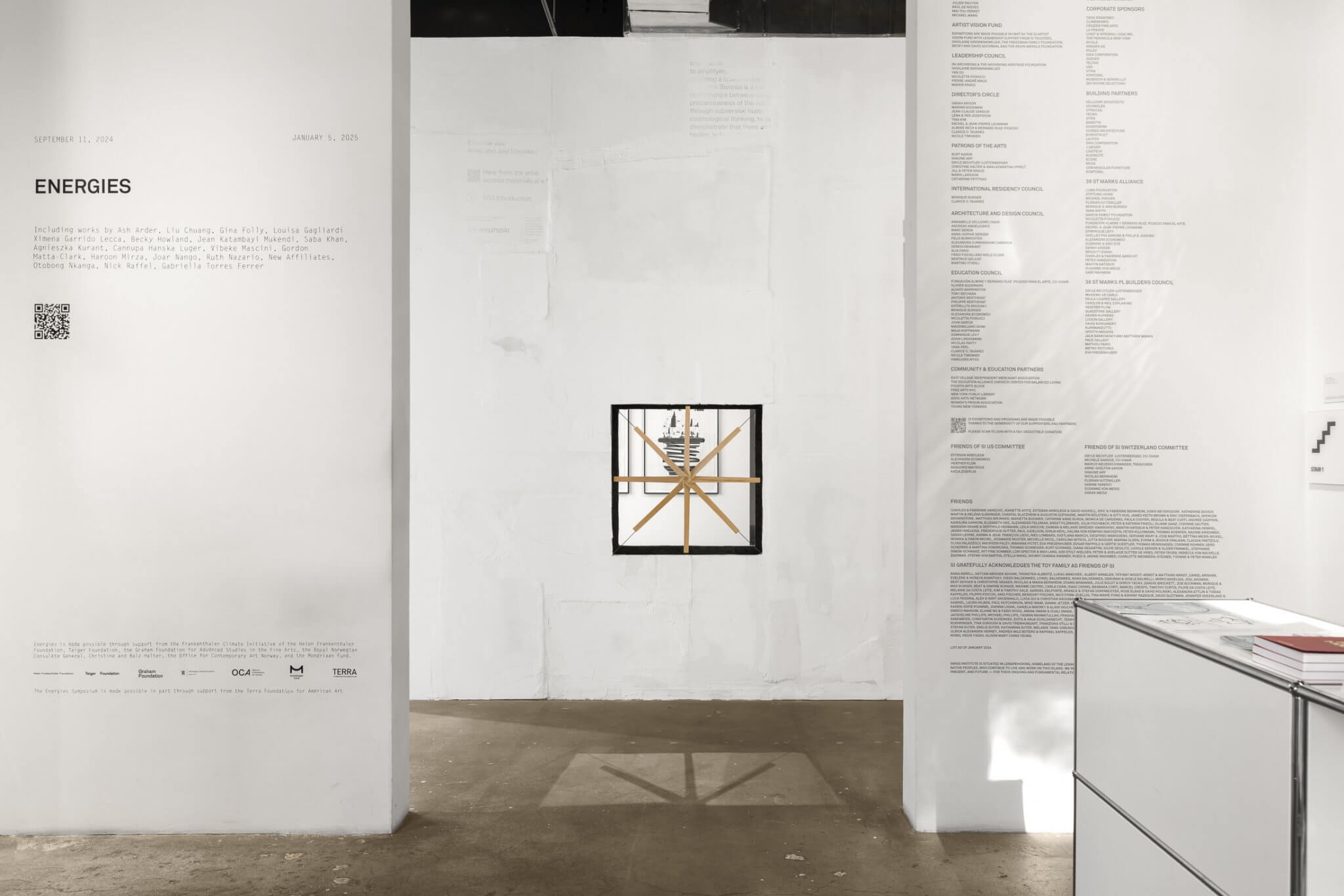 Energies is made possible through support from the Frankenthaler Climate Initiative of the Helen Frankenthaler Foundation, Teiger Foundation, the Graham Foundation for Advanced Studies in the Fine Arts, the Royal Norwegian Consulate General, Christine and Balz Halter, the Office for Contemporary Art Norway, and the Mondriaan Fund.