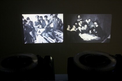 The first exhibition brings together an international group of artists. Selected works are hung in pairs and confront each other in a provocative way. Juxtaposition is rooted in the Art Historical practice of formal comparison, which Heinrich Wölfflin popularized in his “Principles of Art History,” 1915. Rather than unveiling a paradigm shift, these contemporary comparisons undermine the reading of political imagery.