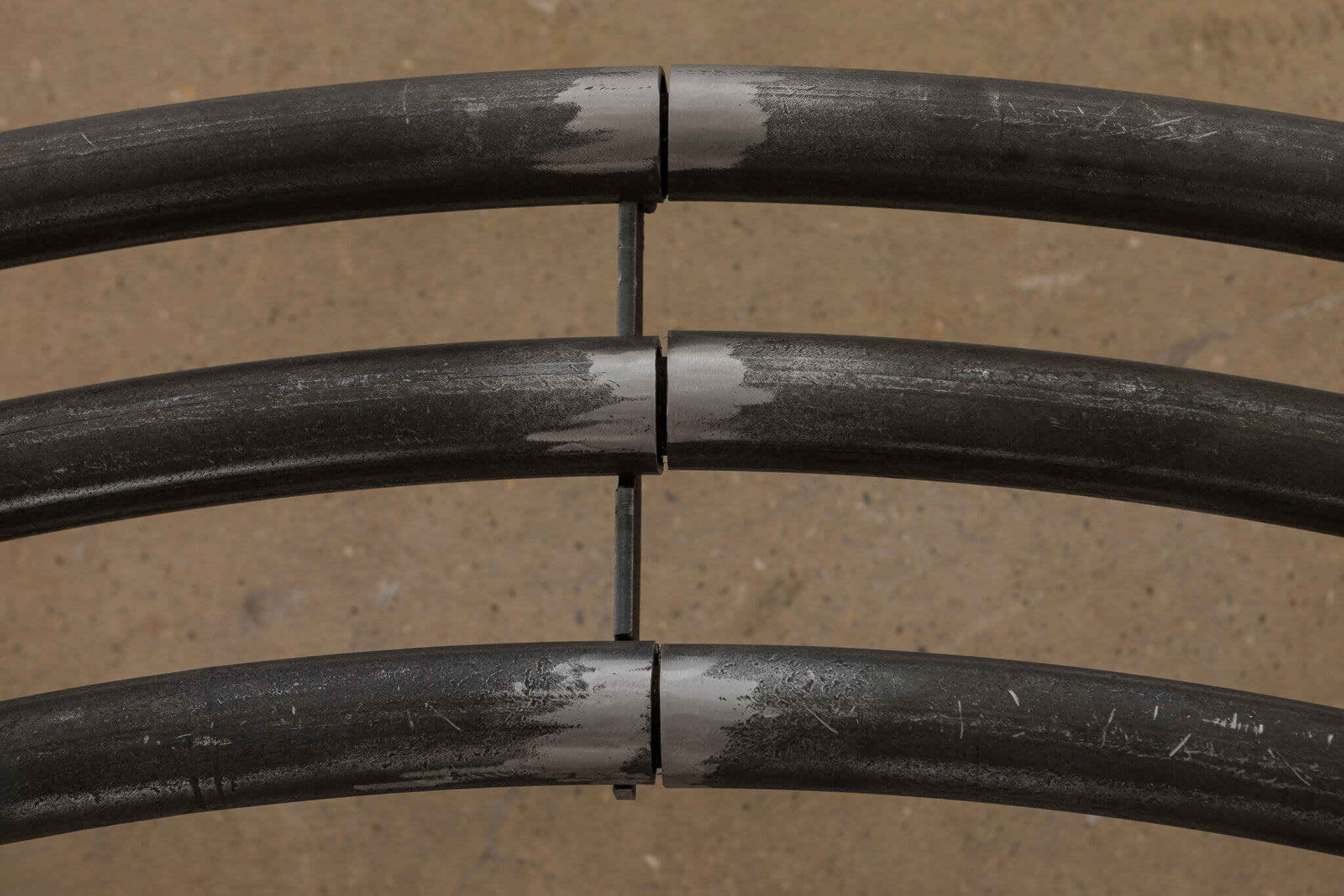 Image: Guillaume Dénervaud, An Unaffordable Fence (Les Orgues), 2023 (Detail). Oil, tempera, and pencil on linen. 70 7/8 x 45 1/4 in (180 x 115 cm).