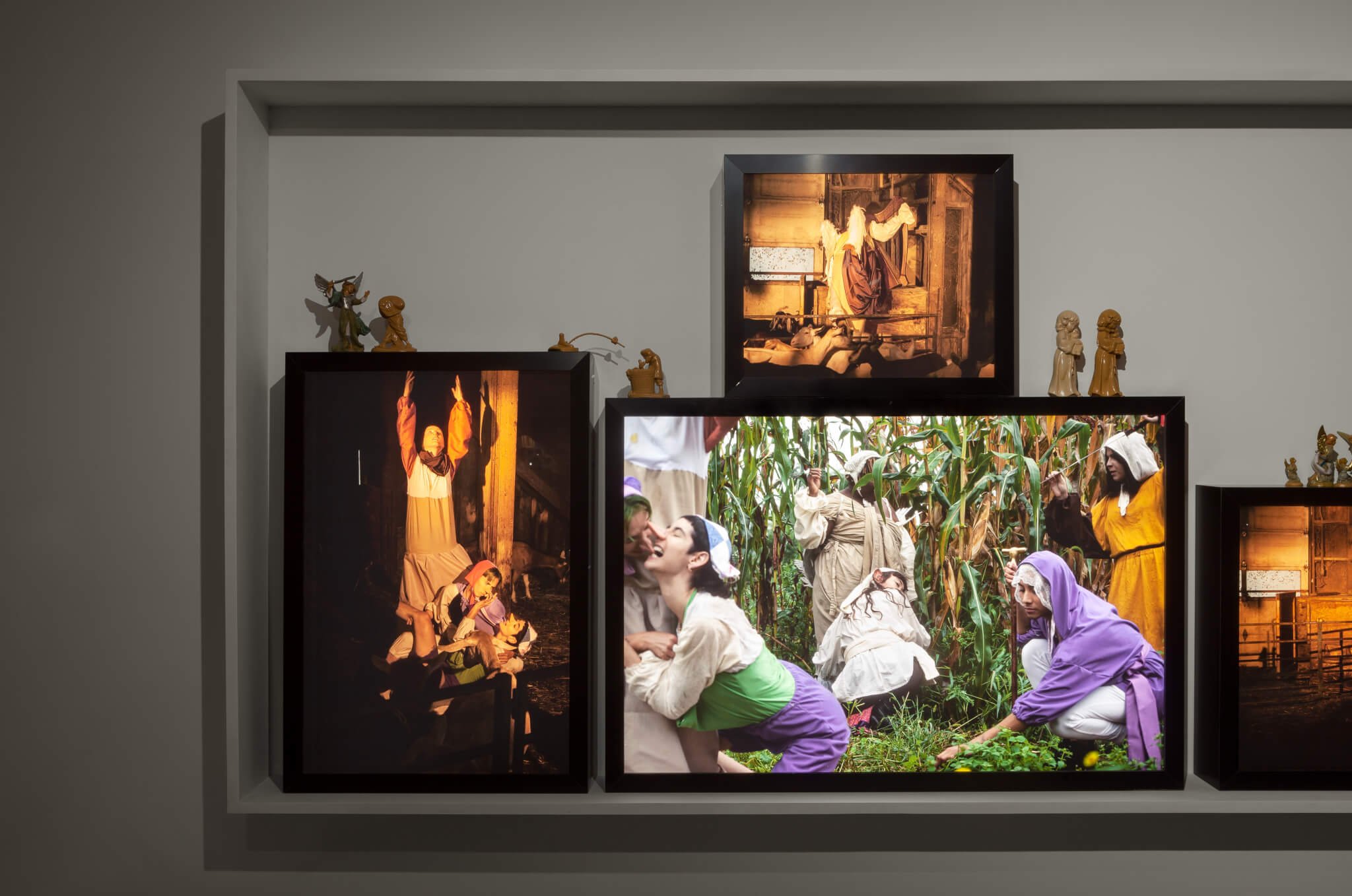 The Mirror of Simple Souls Who are Annihilated and Remain Only in Will and Desire of Love, 2018, detail. Light-boxes, plastic religious figurines 48 x 149 x 7 in (121.9 x 378.5 x 17.8 cm). Courtesy of the artist, Bodega, New York, and Veda, Florence.