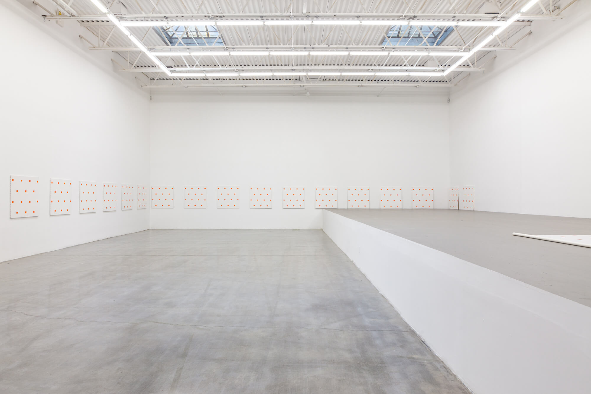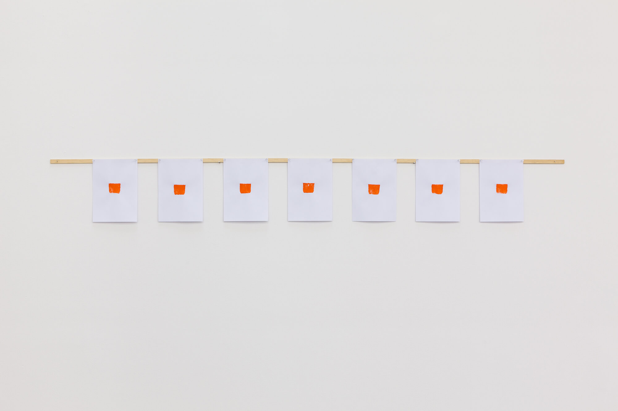 Niele Toroni, Imprints of a no. 50 brush repeated at regular intervals of 30 cm, 7 imprints at regular intervals of 30 cm, 2014.