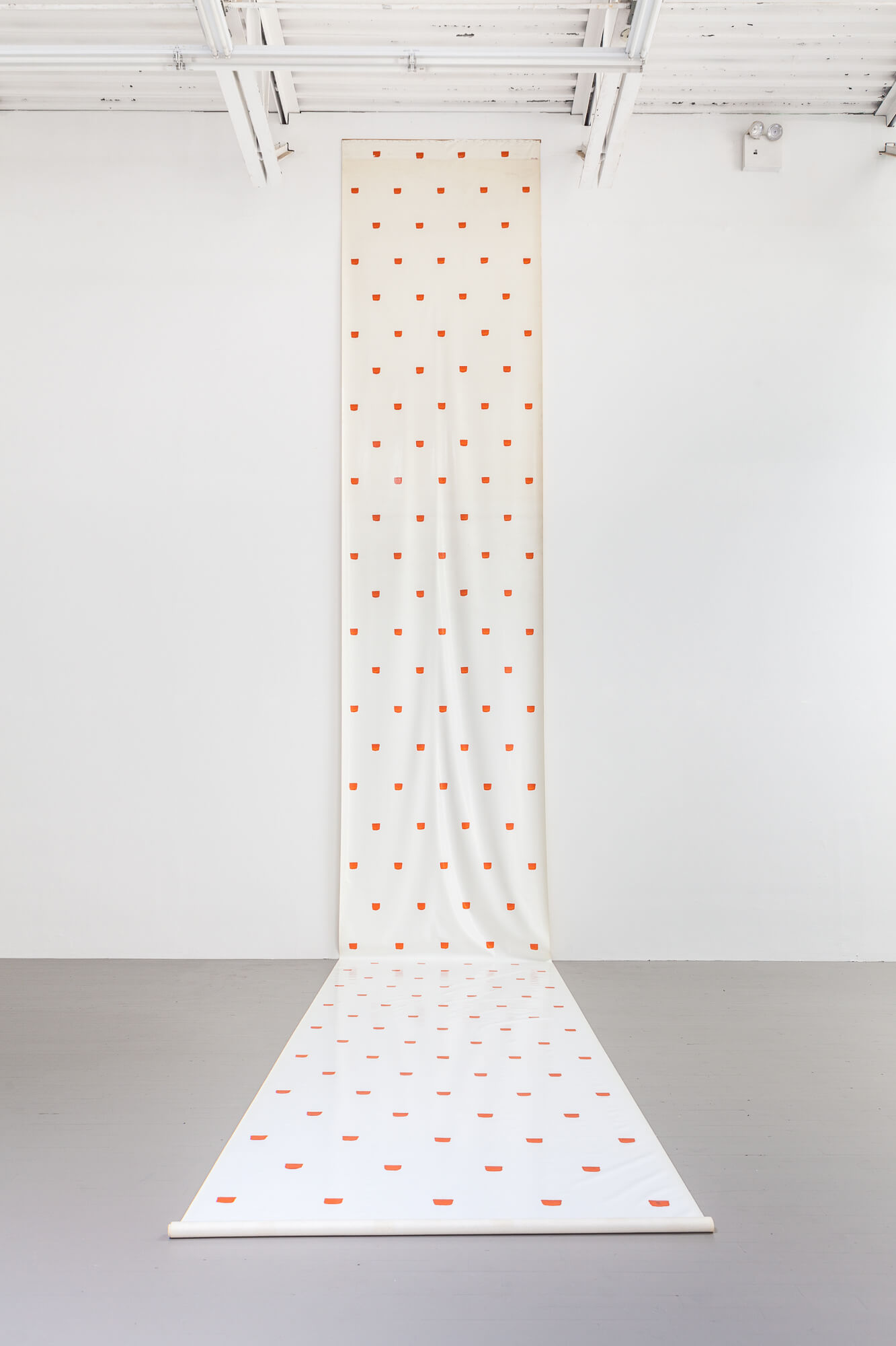 Niele Toroni, Imprints of a no. 50 brush repeated at regular intervals of 30 cm, Roll of waxed canvas, 1968. The Museum of Modern Art, New York. Partial gift of the Daled Collection and partial purchase through the generosity of Maja Oeri and Hans Bodenmann, Sue and Edgar Wachenheim III, Marlene Hess and James D. Zirin, Agnes Gund, Marie-Josée and Henry R. Kravis, and Jerry I. Speyer and Katherine G. Farley.