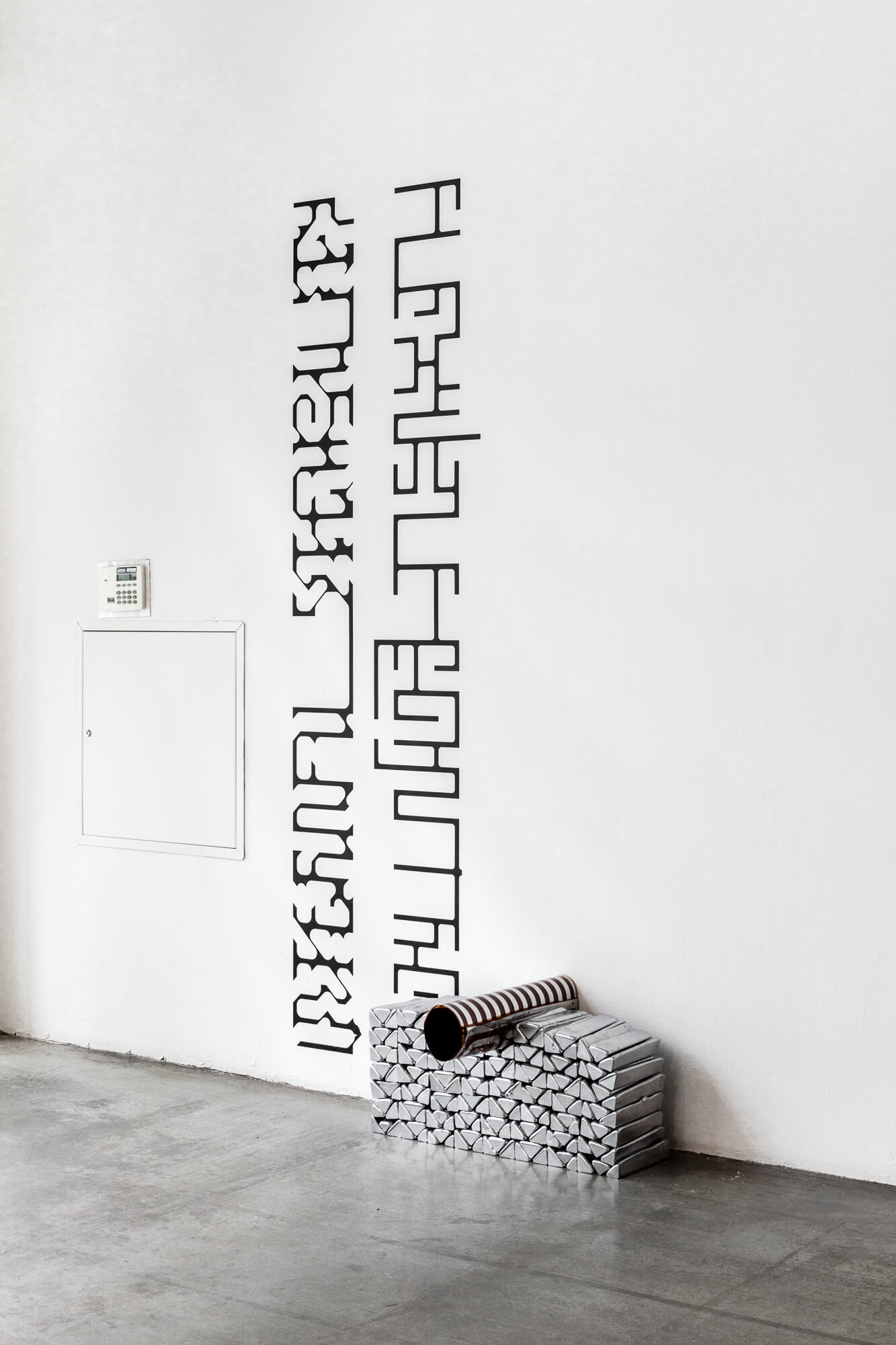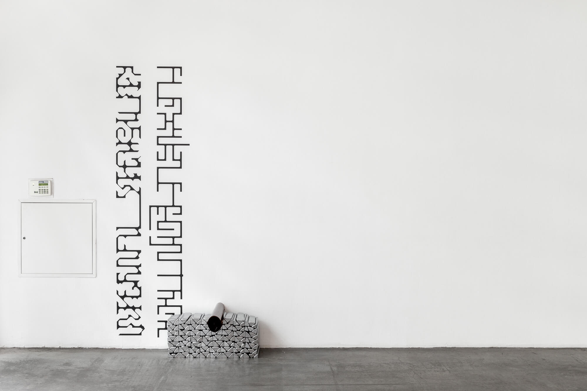 This exhibition is a newly adapted iteration of Lewitt’s More Heat than Light project, initiated by the Wattis Institute for Contemporary Arts, San Francisco, and Kunsthalle Basel, where heating circuits were installed in a similar manner. At Swiss Institute, maxing out the electrical load strains the temperature regulation system, yet the heaters struggle throughout the day to raise the surrounding temperature, creating what the artist describes as a ‘weak local lineament’ of the conditions of circulation. For this exhibition Lewitt emphasizes the linguistic elements of the project, using pairs of keywords from the literature surrounding the heating technology to determine the path of the circuits from the outset. The circuits are designed using these textual couplets as a guideline, the copper tracing an outline of the words whilst taking a course that adheres to industry standards. Despite the fact that the forms created in the heating elements are literally structured around written language, the words are virtually illegible, embedding ambiguous hieroglyphs into the local climate.