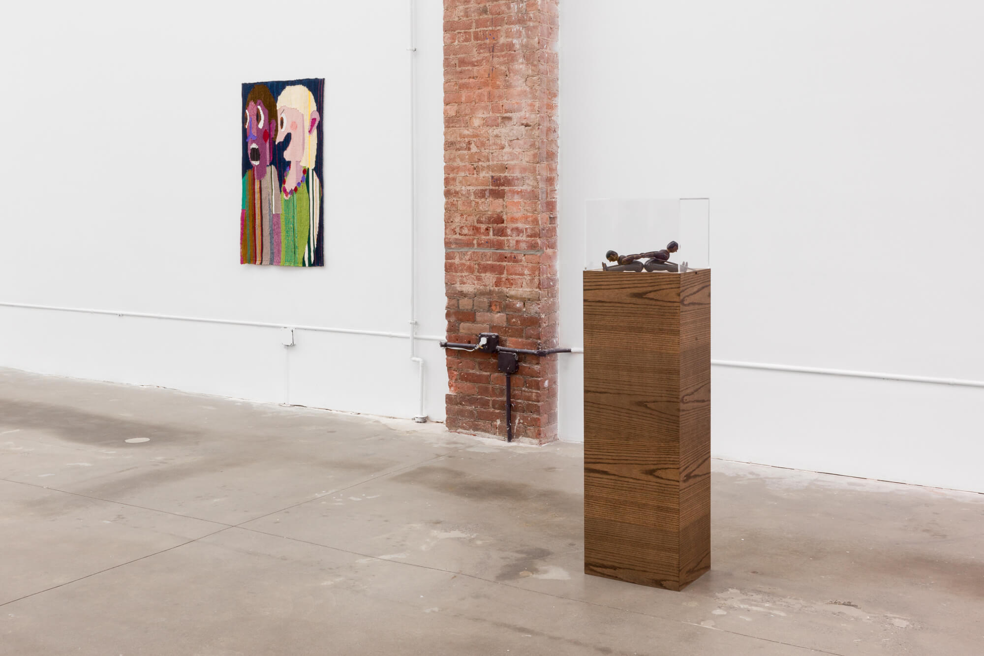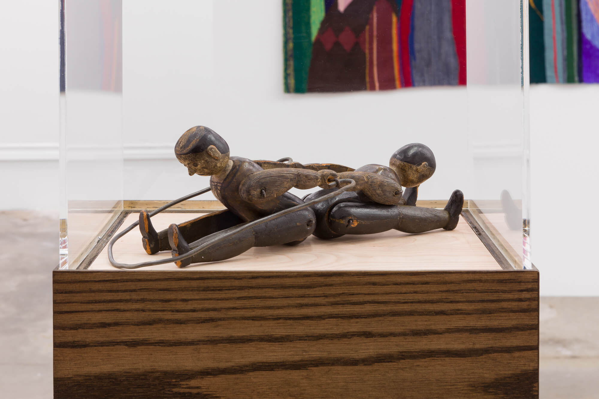 The exhibition finds an allegorical mascot in the form of a 19th century wooden children’s toy, which Forrer selected from the collection of the Winterthur Museum in Delaware. The toy features two back-to-back figures connected by the hands, who must move together, bound eternally.