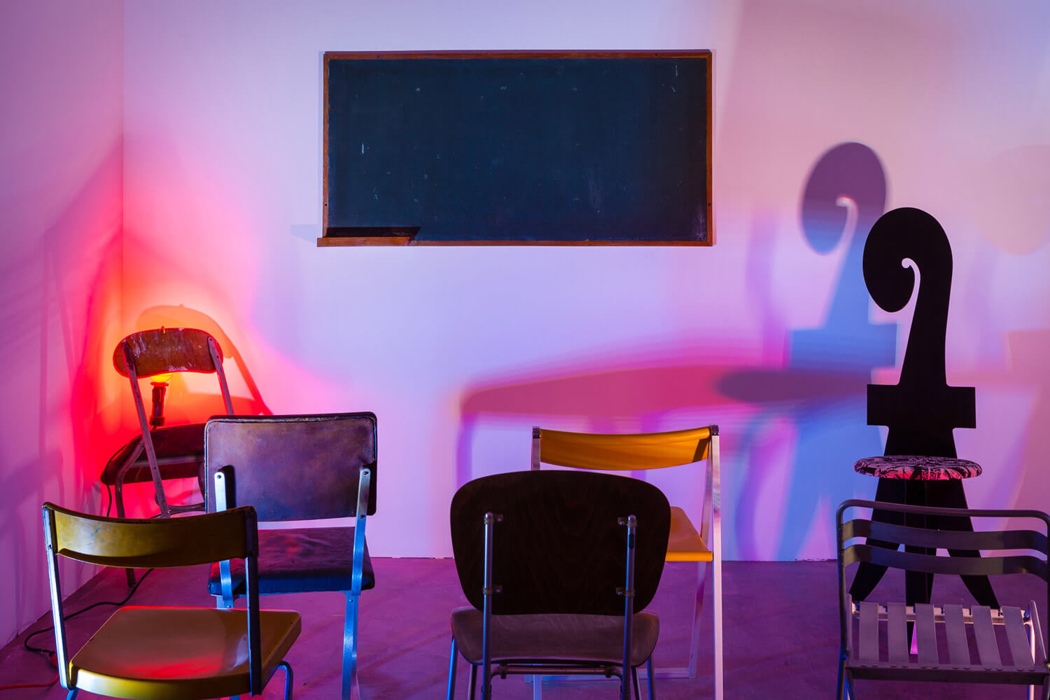 At this moment the audience would have in front of them … empty chairs on an empty stage decorated with streamers, littered with useless confetti, which would give an impression of sadness, emptiness and disenchantment such as one finds in a ballroom after a dance; and it would be after this that the chairs, the scenery, the void, would inexplicably come to life … upsetting logic and raising fresh doubts. –Eugène Ionesco