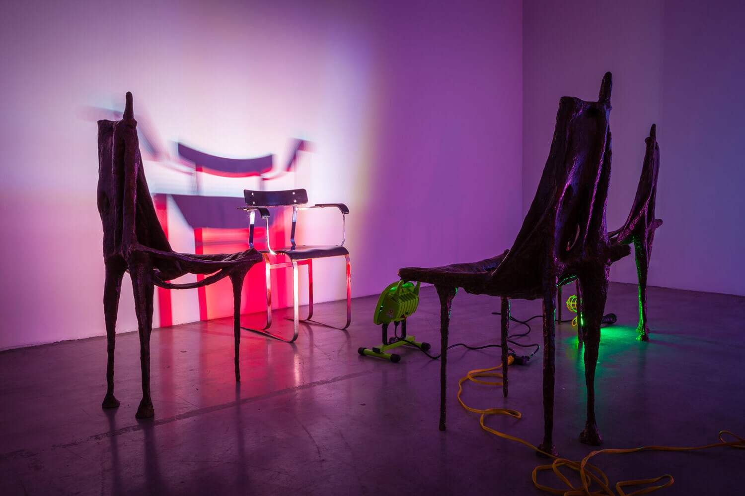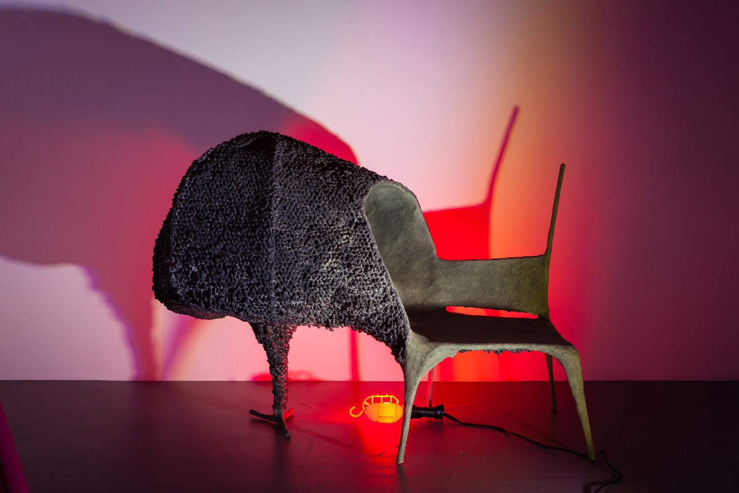 In “The Chairs,” an elderly couple recounts the demise of civilization to a stage full of empty chairs. Absent of any sitters, the audience is left to imagine the invisible figures that the increasingly incoherent Old Man and Old Woman address. In Fin de Siècle, the chairs themselves speak asynchronously, cast as characters and imbued with life. Directed into small vignettes of imagined conversations and actions that transcend periods and design movements, their dialogue echoes the modernist promise fading away.