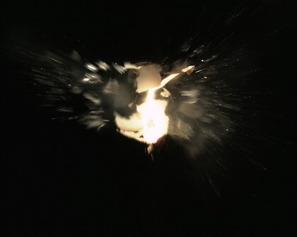 The centripetal attrition of Nina Beier and Marie Lund’s History Makes a Young Man Old (2008) is complemented by the instantaneous, centrifugal explosion in Micheal Sailstorfer’s Untitled (Bulb) (2010). Although the former departs from the theme of technology, it is nevertheless driven by an idea that becomes a machine (to make art), using performance to facilitate a sense of deterioration wrought by time and use. For this piece, the artists direct the curators to roll a crystal ball from wherever it is purchased in the city of the exhibition venue to the exhibition site itself, an idiosyncratic odyssey, which inevitably renders the ball opaque and unseeing and thus turned irreversibly inward. Sailstorfer’s transfer of an HD video to a 16mm projection on the other hand, which depicts the super slow motion explosion of a light bulb shot by an air rifle, expands evocatively outward. At once a memento mori and an allegory of creation, the piece presages the more spectacular mode of destruction to come in chapter two.