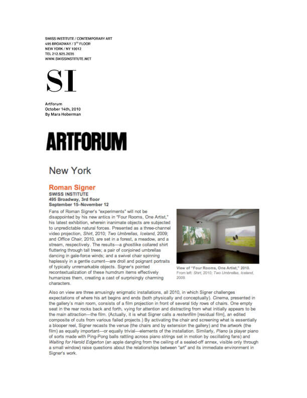 Roman Signer | Artforum.com | Artforum.com