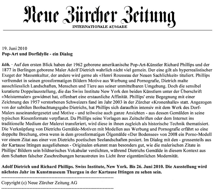 Adolf Dietrich / Richard Phillips | Neue Zürcher Zeitung | Neue Zürcher Zeitung