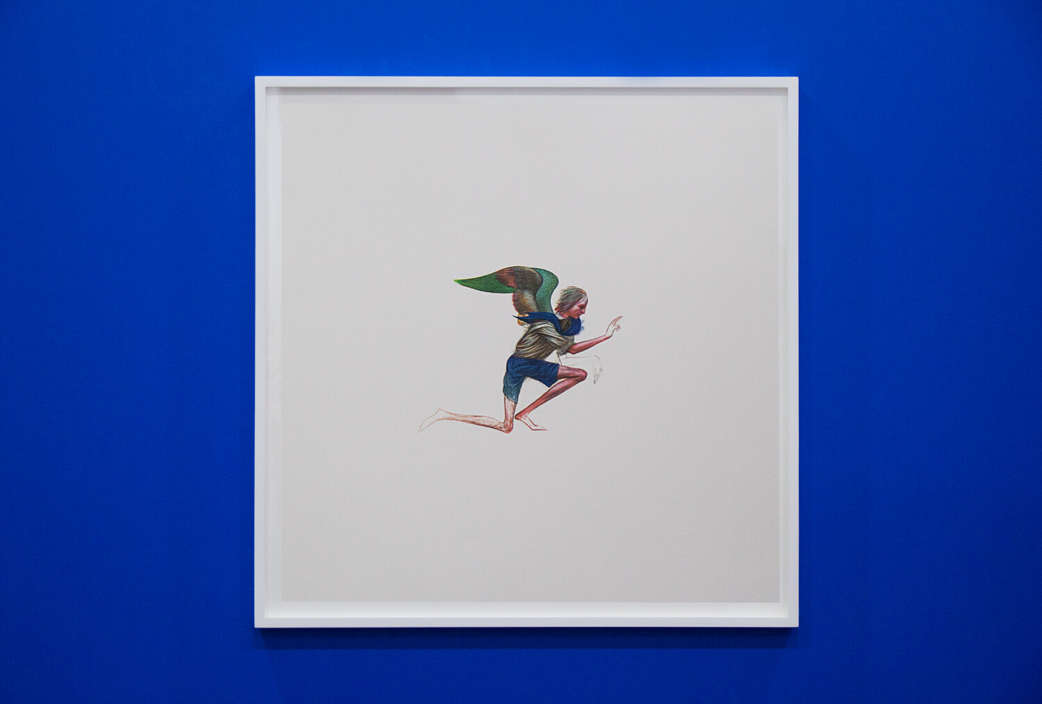 Julien Nguyen’s Gabriel (Study for an Annunciation) exemplifies the artist’s examination of how identities and narratives are cultivated in relation to the canon. Mining imagery from Renaissance painting, manga, science fiction and antiquity, the figures that populate Nguyen’s nuanced works oscillate between the familiar and the alien. Here, Nguyen depicts one of the most represented biblical scenes, the Archangel Gabriel performing the annunciation of the Virgin, modeling the figure after Leonardo’s early interpretation. Nguyen renders the angel in a Japanese schoolboy’s uniform rather than traditional robes, fashioning a new, chimerical messenger.