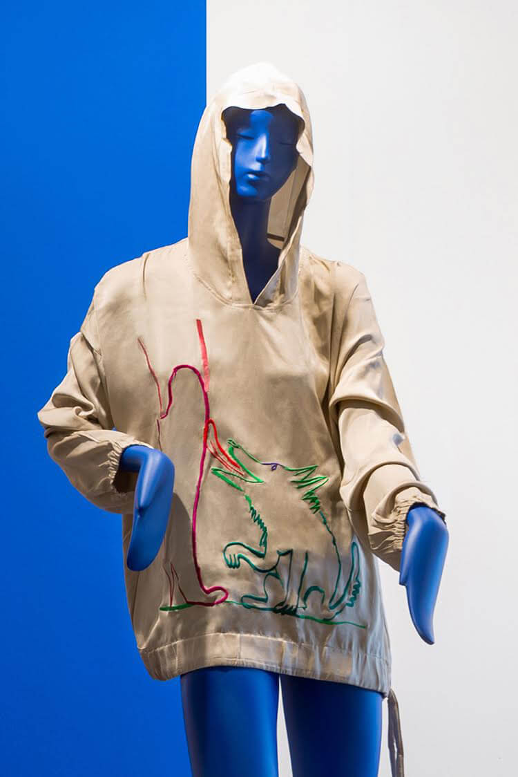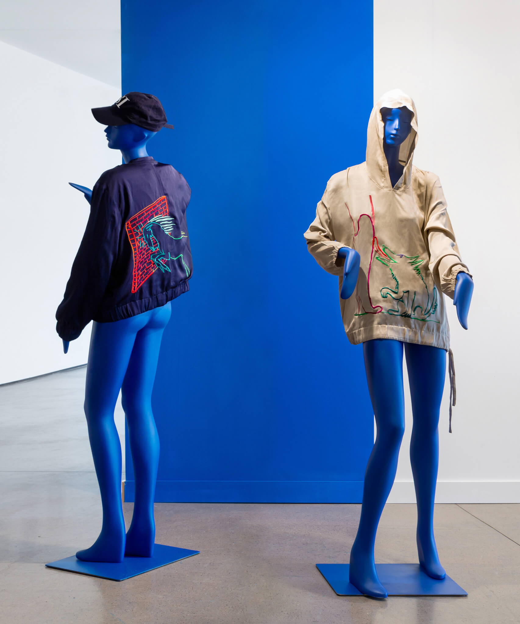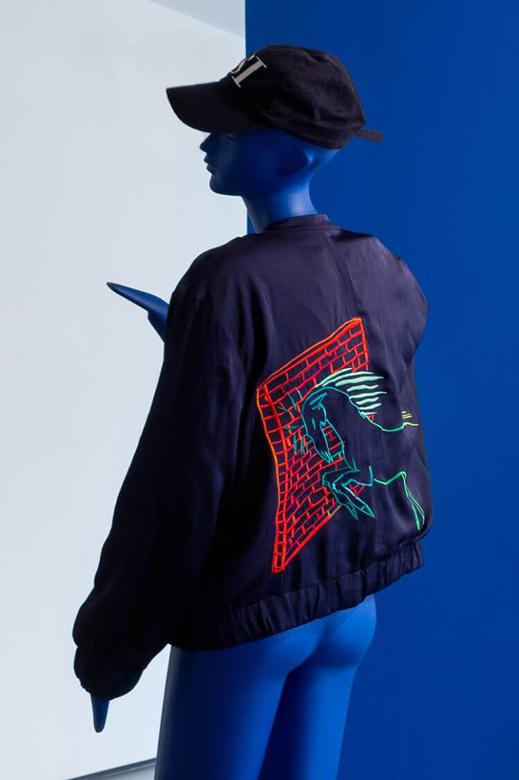 Specially commissioned limited edition embroidered silk jackets by artist Camille Henrot in collaboration with parenti’s. Select pieces are unique.